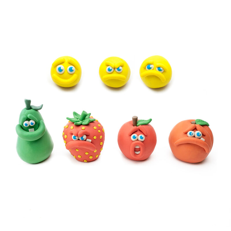 Hoe ziet een verdrietig gezicht eruit? En hoe kun je verbaasd of boos uitbeelden? Kinderen kleien verschillende soorten fruit en geven deze een gezicht. Is dat nog wat lastig? Dan kunnen ze in plaats van fruit ook eenvoudig een bolletje kleien waarop ze een gezichtje maken. Denk aan een oog dat boos kijkt of een mondje dat verbaasd open staat. Doordat ze met klei werken, kunnen de kinderen hun creaties steeds opnieuw aanpassen. Zo ontdekken ze spelenderwijs hoe emoties eruitzien, dat gevoelens kunnen veranderen én hoe je die visueel kunt uitdrukken.